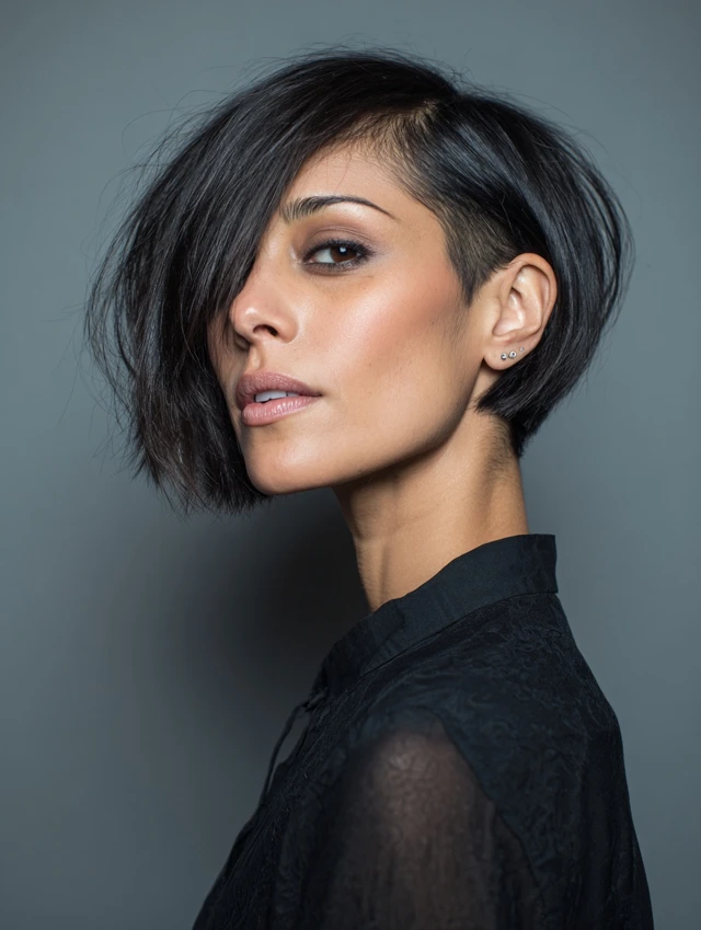 The undercut bob is a chic, edgy hairstyle featuring a classic bob with one section of the hair shaved or closely cropped, usually underneath or at the sides. It adds volume, contrast, and texture while maintaining the elegance of a bob. Works on straight, wavy, or slightly curly hair. Many women choose undercut bobs to express personality, create a fashion-forward look, and maintain manageable length. This hairstyle frames the face beautifully, suits multiple face shapes, and can be styled sleek, tousled, or textured depending on preference.