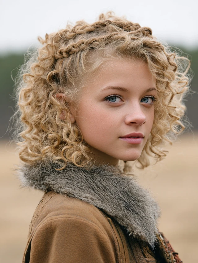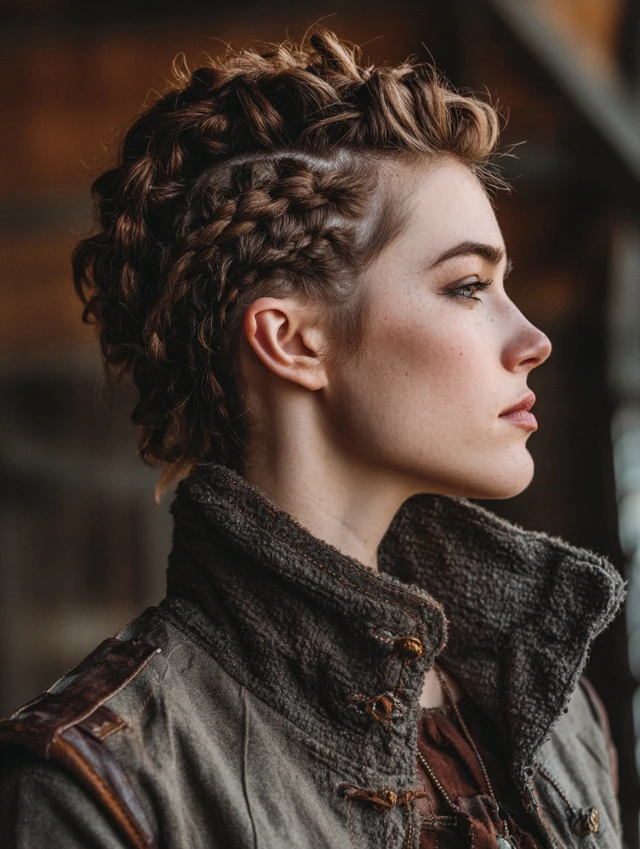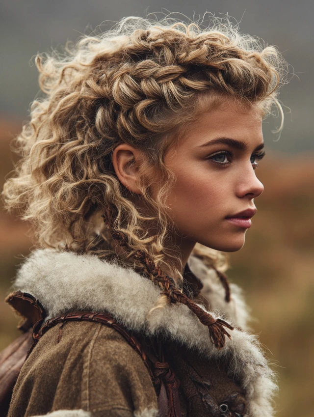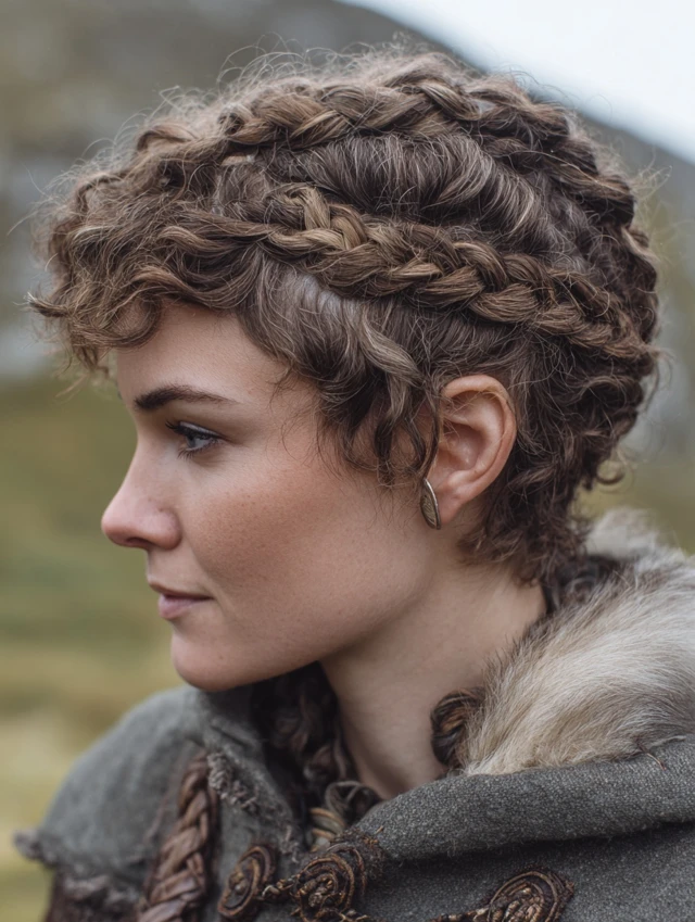 Short Curly Viking Style with Braided Crown