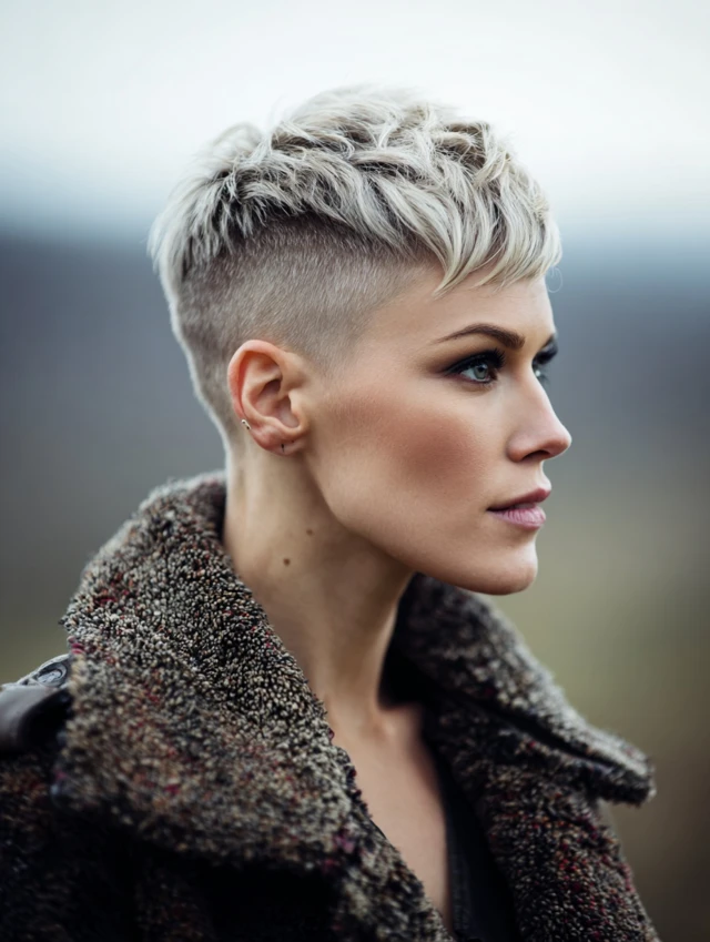 This style pairs a cropped pixie with one shaved side. It suits oval and heart-shaped faces best. The undercut sharpens your profile, while small braids add detail. Thick hair benefits most because it holds structure well.