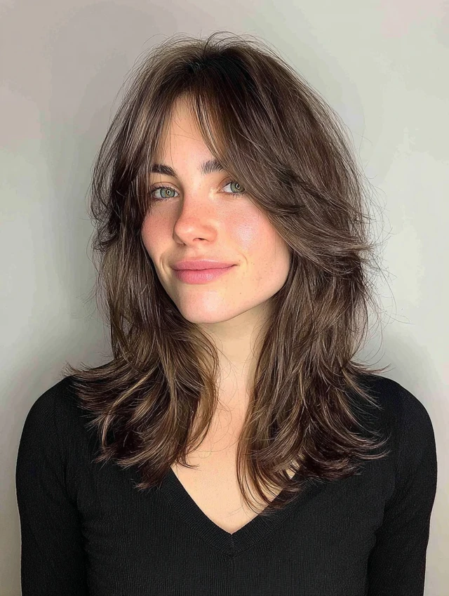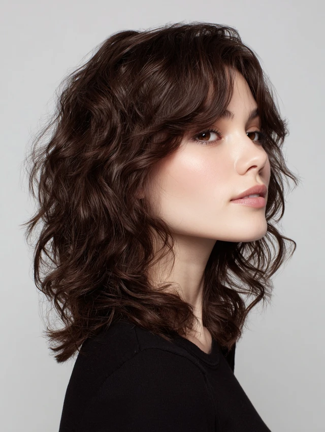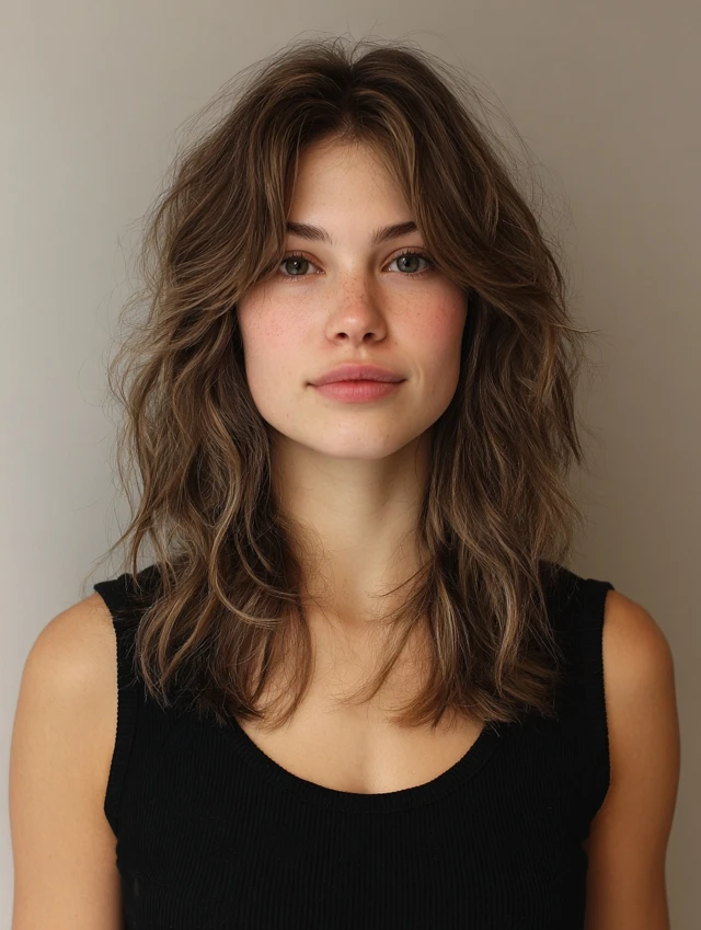 A shoulder-length version offers balance between volume and flow. It works for most face shapes and medium to thick hair. Waves enhance the layered structure without overwhelming the face.