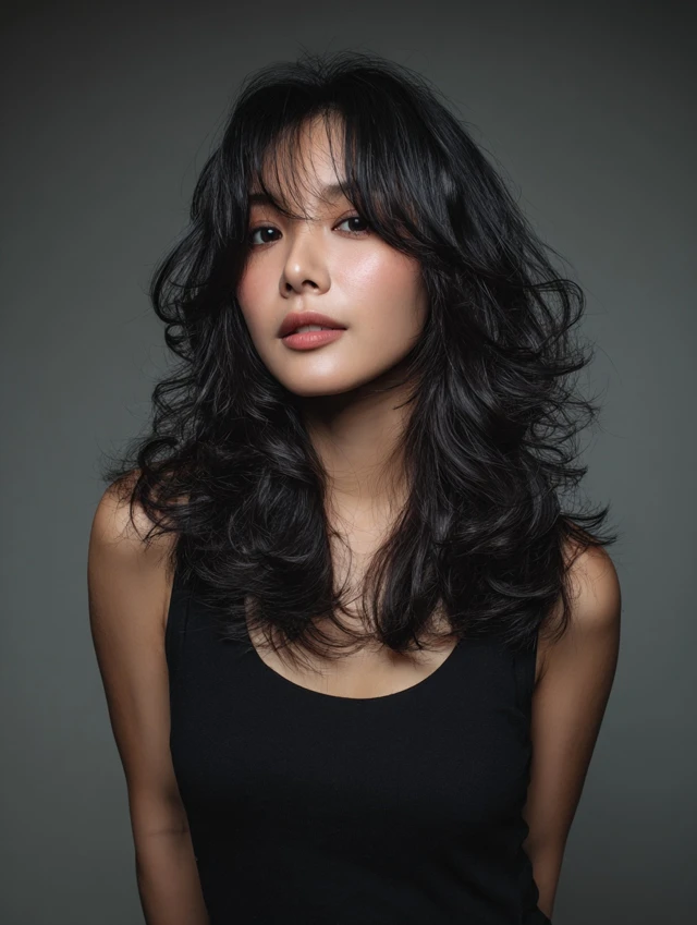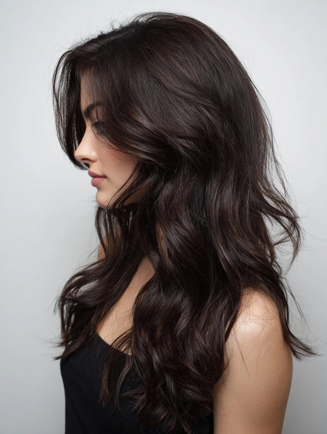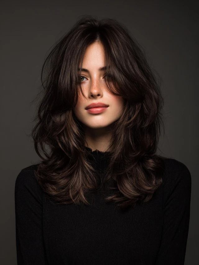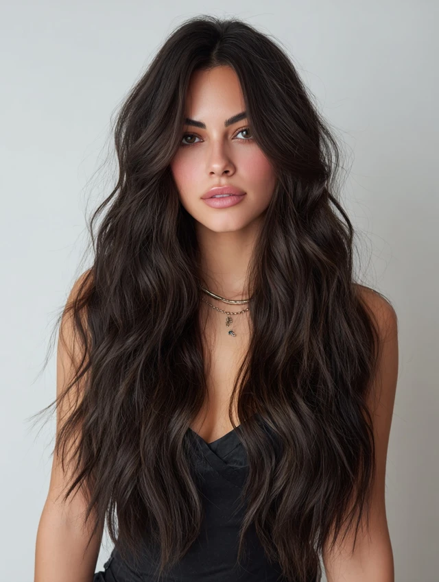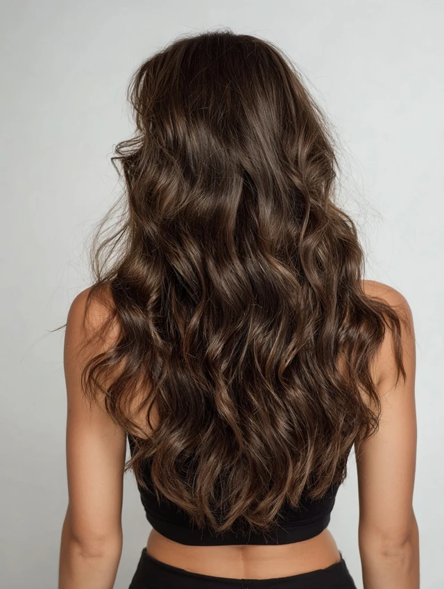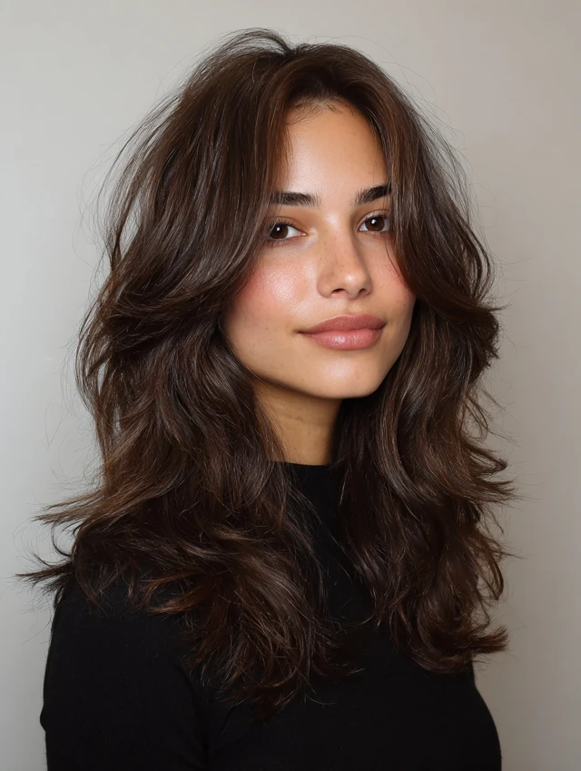 This style keeps length while adding crown volume and layered movement. It flatters oval, heart, and square faces. Natural waves prevent long hair from looking flat or heavy.
