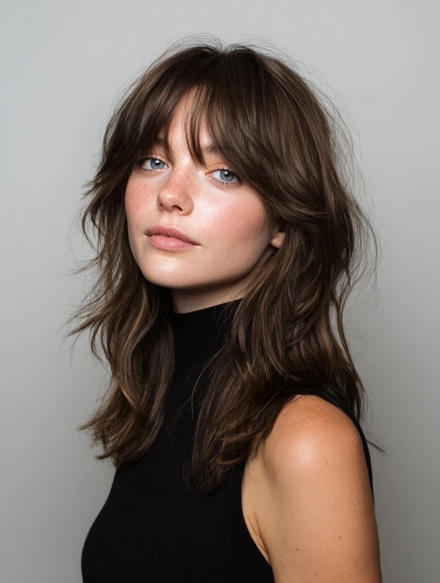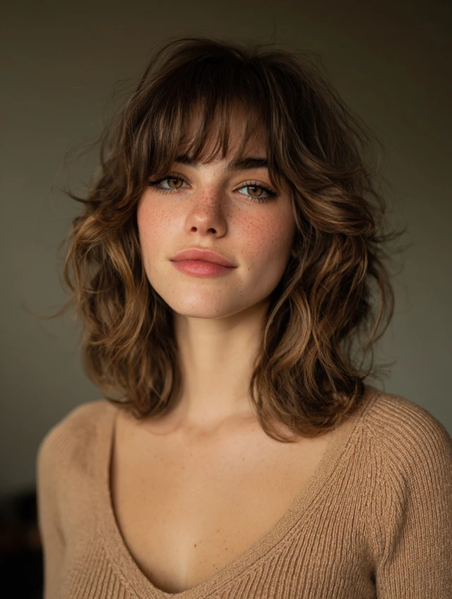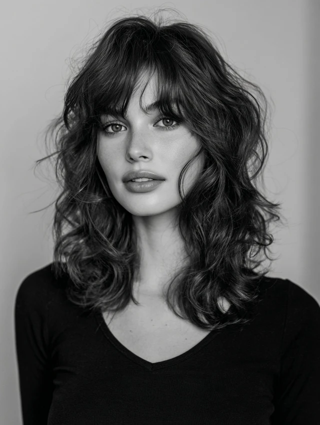Wavy Wolf Cut with Curtain Bangs