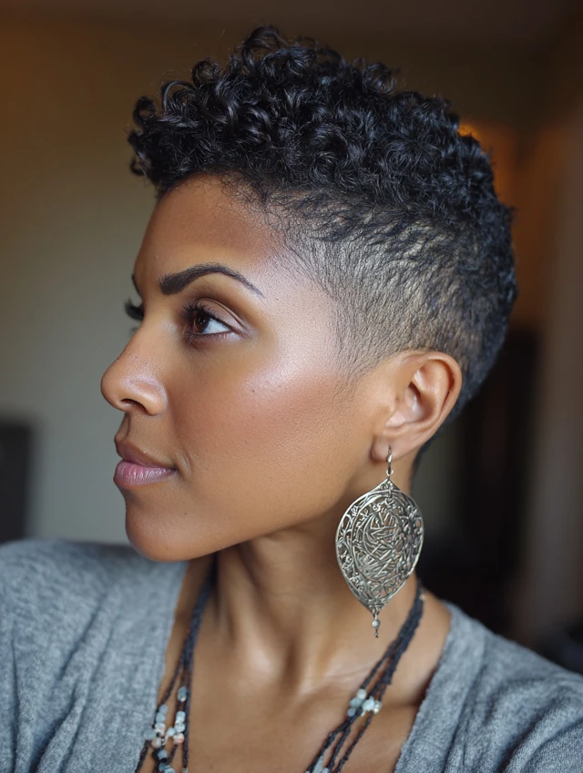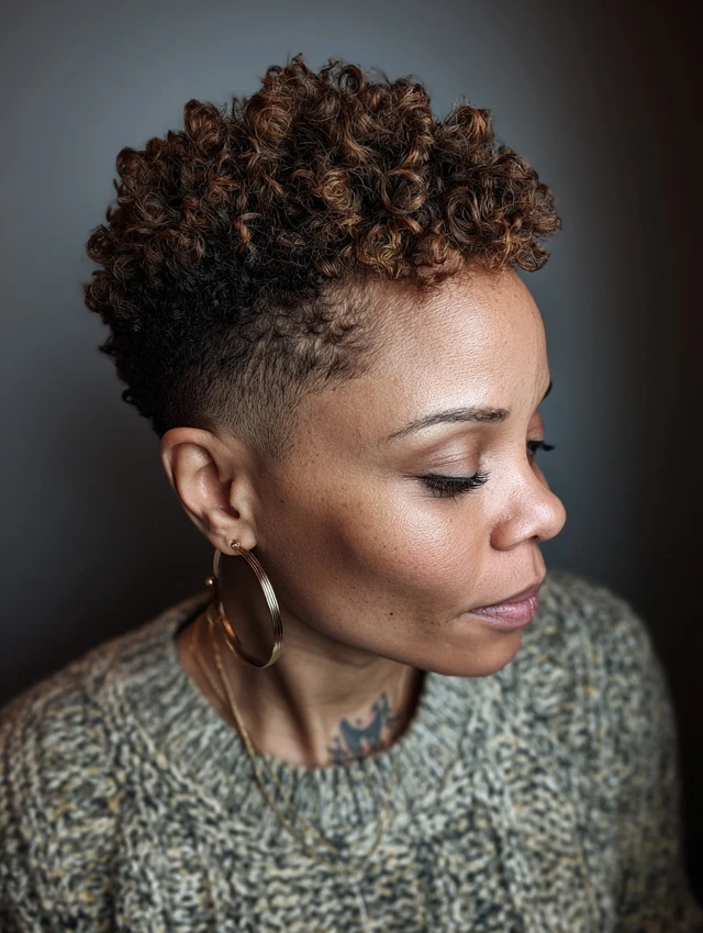 Daily styling takes minutes—apply leave-in conditioner or curl cream and let curls air-dry. The tapered cut keeps hair manageable while enhancing face shape and volume. It’s perfect for casual wear, professional settings, or special events. The low-maintenance approach emphasizes natural beauty while staying stylish.