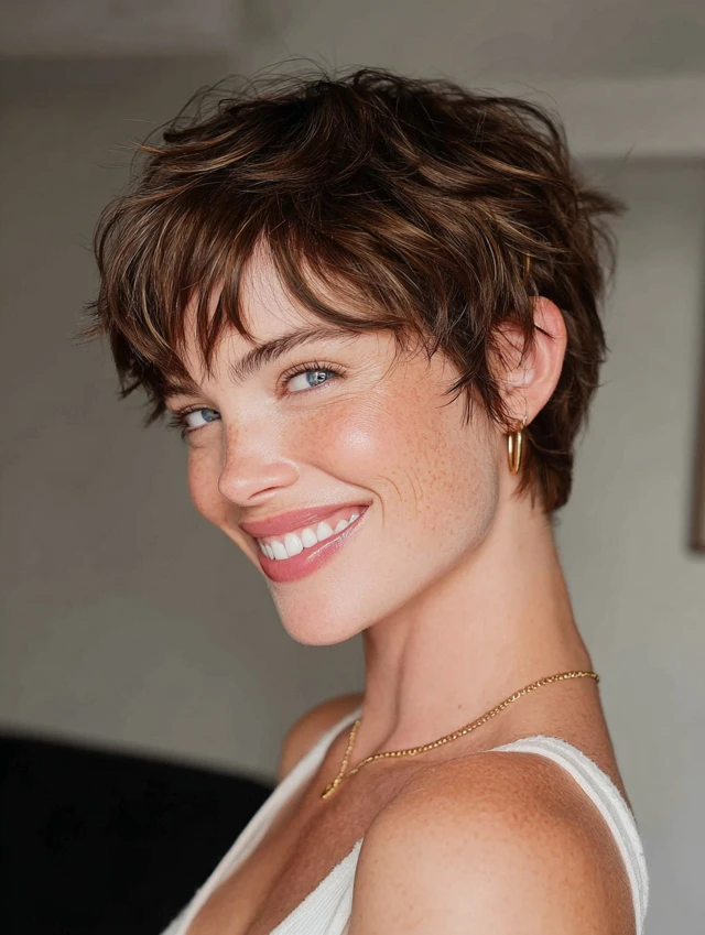 A shaggy pixie is ideal for women with fine to medium hair. The short, textured cut adds volume and movement while staying easy to manage. It suits oval, square, and heart-shaped faces. A shaggy pixie requires minimal products—just a texturizing cream or light mousse. This style works for active lifestyles and hot climates.