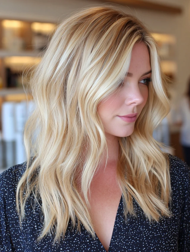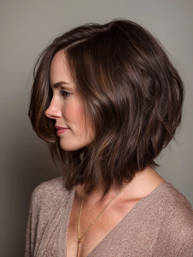 A layered lob offers length without heaviness. It suits oval, square, and heart-shaped faces, creating a flattering frame. Medium to thick hair responds best to layers that add volume and bounce. The style works for busy routines because it air-dries well and requires minimal styling.