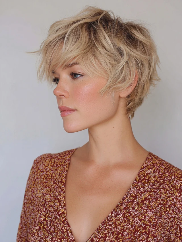 The cut emphasizes natural texture and highlights facial features. Side-swept bangs can soften the forehead, while layers create a playful, youthful silhouette. Daily styling is quick, and it grows out without looking messy. This hairstyle is perfect for women seeking low-maintenance chic and modern appeal.