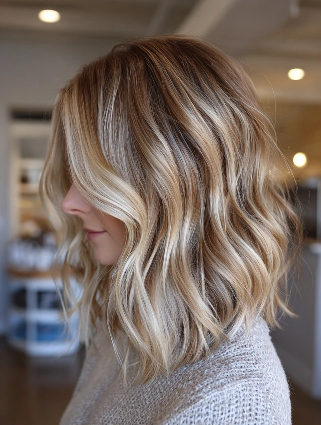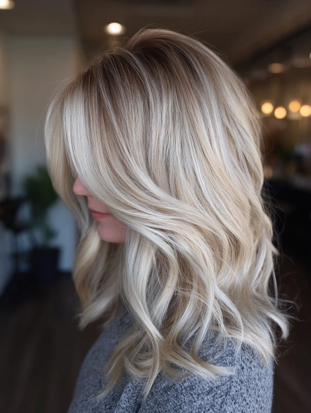 Keep the highlights soft and diffused. Style with natural waves for dimension. This look works well in colder climates because it prevents pale tones from looking flat.