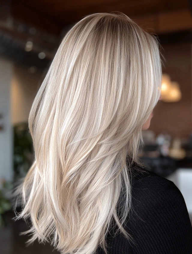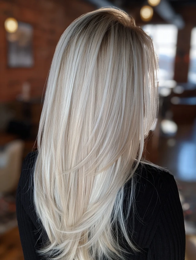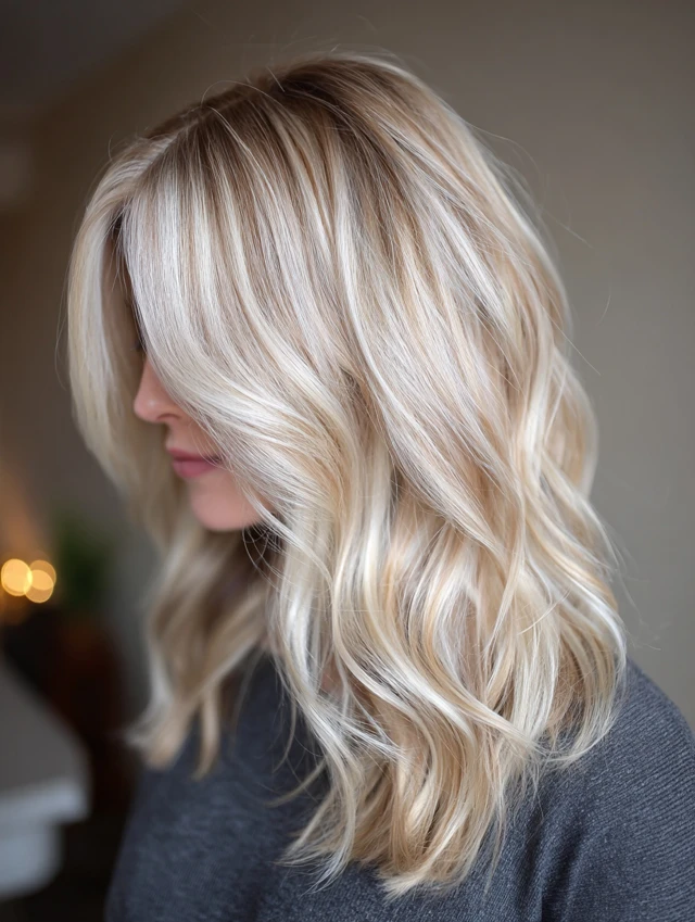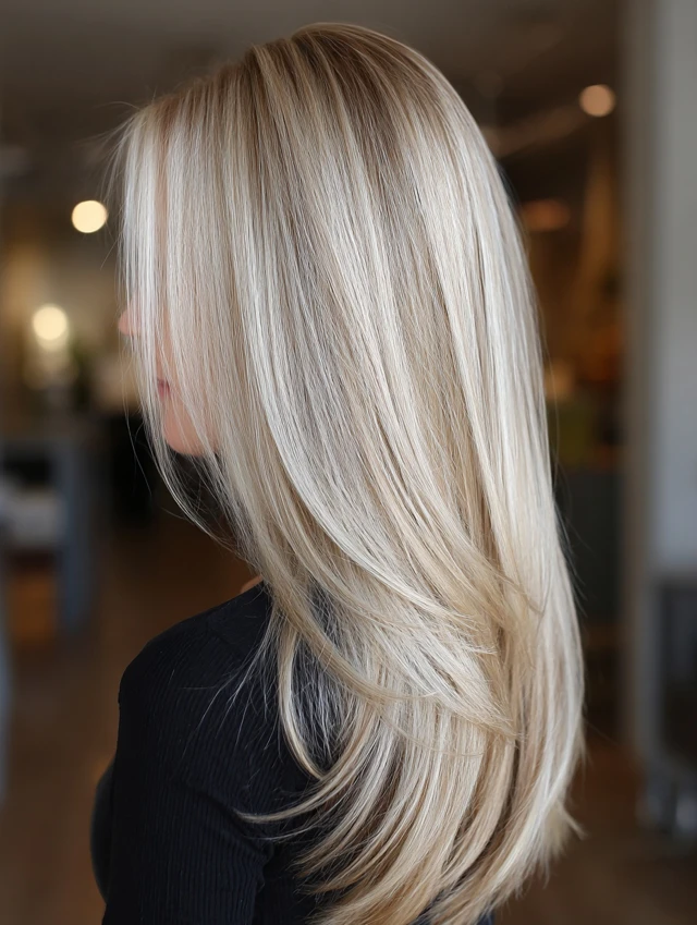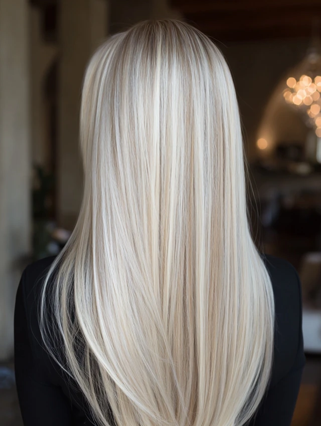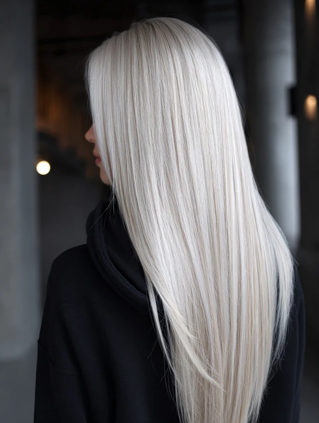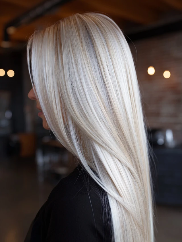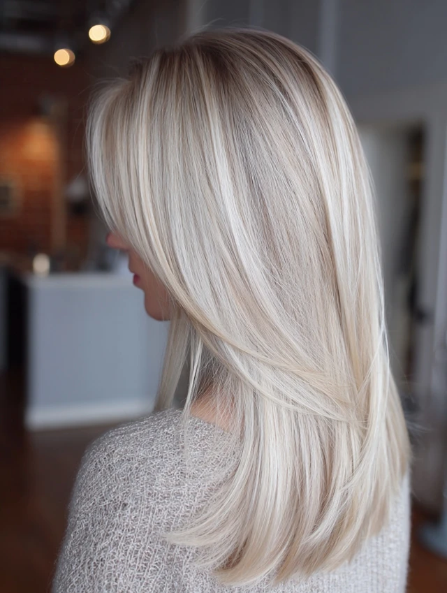 Icy platinum adds brightness with a cool edge. This shade suits oval and heart-shaped faces because the light reflection sharpens features. Fine hair looks fuller when lighter pieces are evenly distributed.
