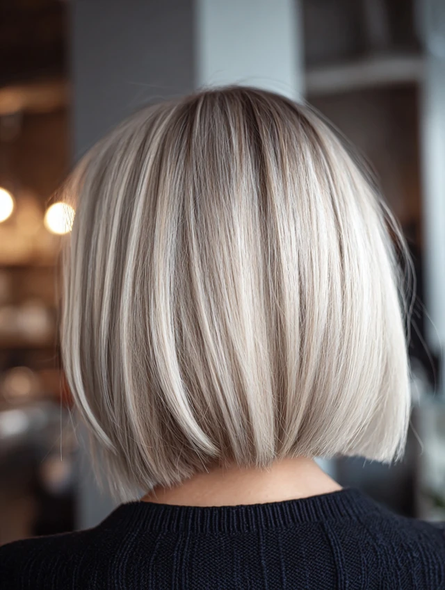 Blend ash highlights into your base rather than isolating them. Use moisture treatments to prevent dryness. This look works for sleek bobs and layered cuts alike.